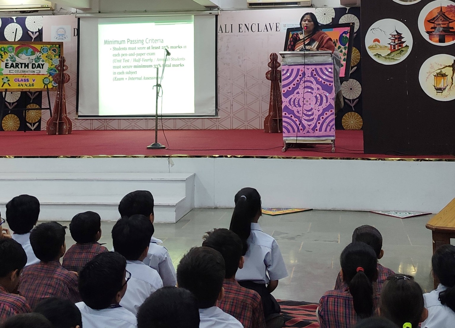 A special assembly on Earth Day was thoughtfully conducted for the students of Class 5 on 24 April 2026. The programme commenced with engaging speeches by students, who eloquently highlighted the urgent need to protect and preserve our planet. Their words served as a powerful reminder of our shared responsibility towards the environment.