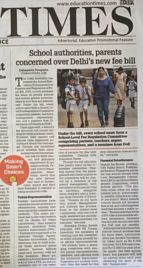 Mrs. Rashmi Raj Biswal (Principal) views on Fee bill published in Education Times dated 25/8/25